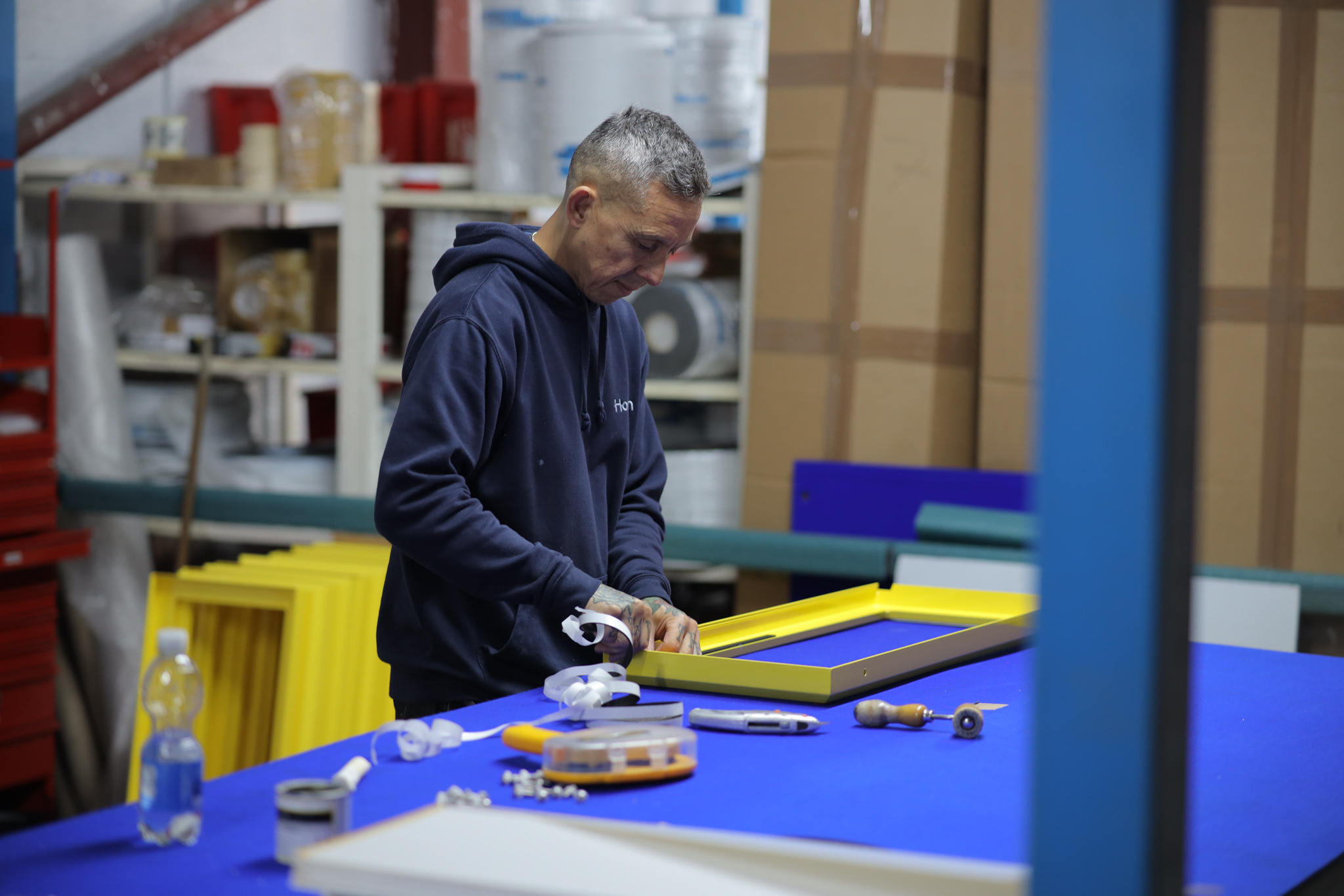 Our busy assembly area is where we put the finishing touches on the fabricated and powder-coated products we have just produced. The despatch team adds additional components such as felt-covered pinboard inserts, polycarbonate windows, or magnetic panels according to the customer’s specifications. Skilled technicians fit any mechanical parts like hinges or pneumatic arms before the product undergoes a final quality check.